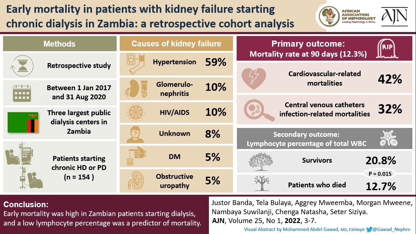Conclusions: Early mortality was high in Zambian patients starting dialysis, and a low lymphocyte percentage was a predictor of mortality.