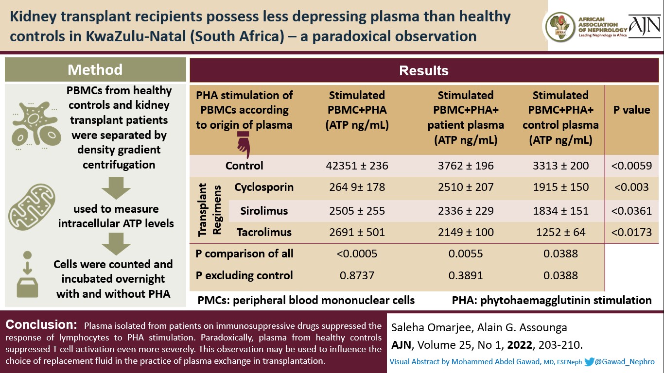 Kidney transplant recipients possess less depressing plasma than healthy controls in KwaZulu-Natal (South Africa) – a paradoxical observation